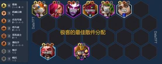 金铲铲之战极客阵容由巨魔、风女、机器人、金克丝、艾克和炸弹人构成六极客。在游戏的初期阶段,应当优先考虑为后期金克丝装备羊刀、巨杀和正义之手。艾克则可获得一个巨人腰带,随机转化为鬼书。机器人和炸弹人分别可以装备巨人腰带或背心,而风女则适合给水滴装备。
