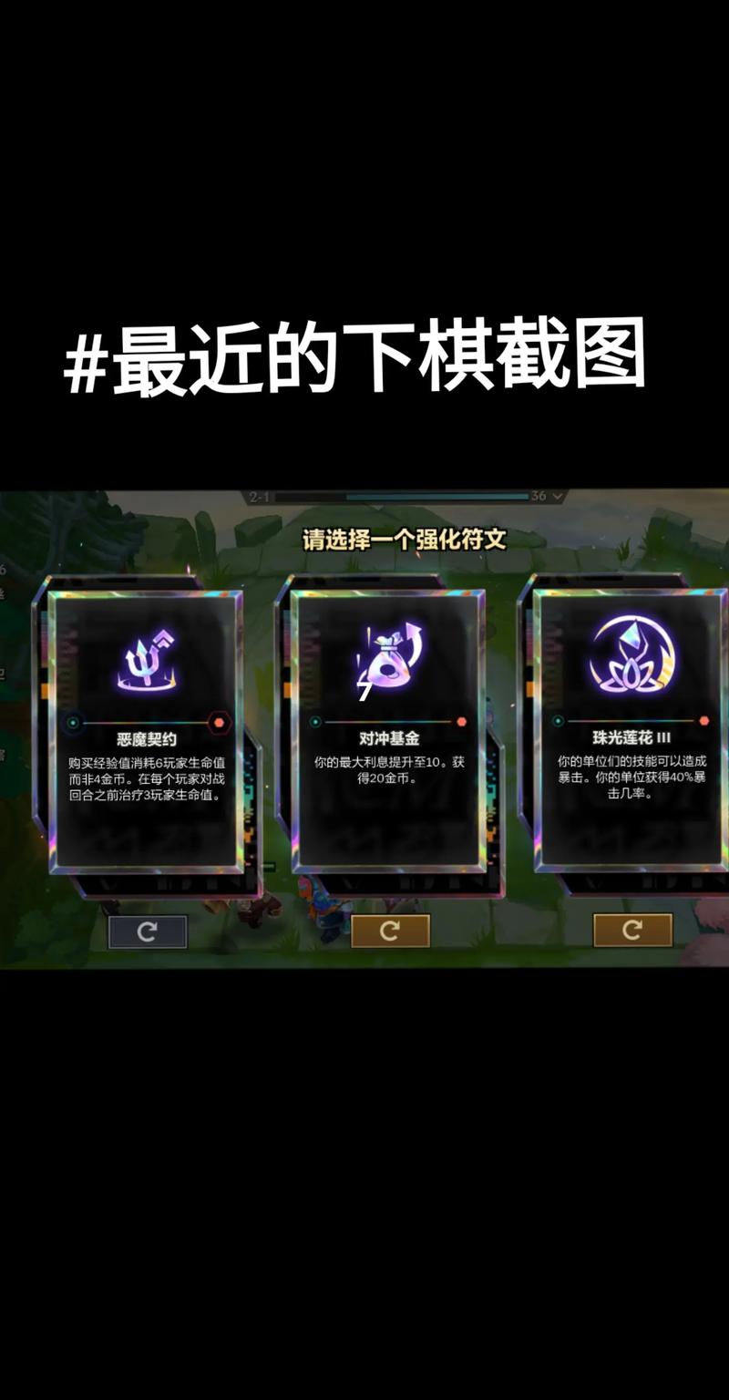〖One〗、游戏早期(阶段1-4)会发给你一个海克斯强化,中期(阶段3-3)再发一个,后期(阶段4-6)发放最后一个。每次都有三个海克斯强化供你选取。当你选取一个海克斯强化以后,它置入你的海克斯核心,全员可见。
