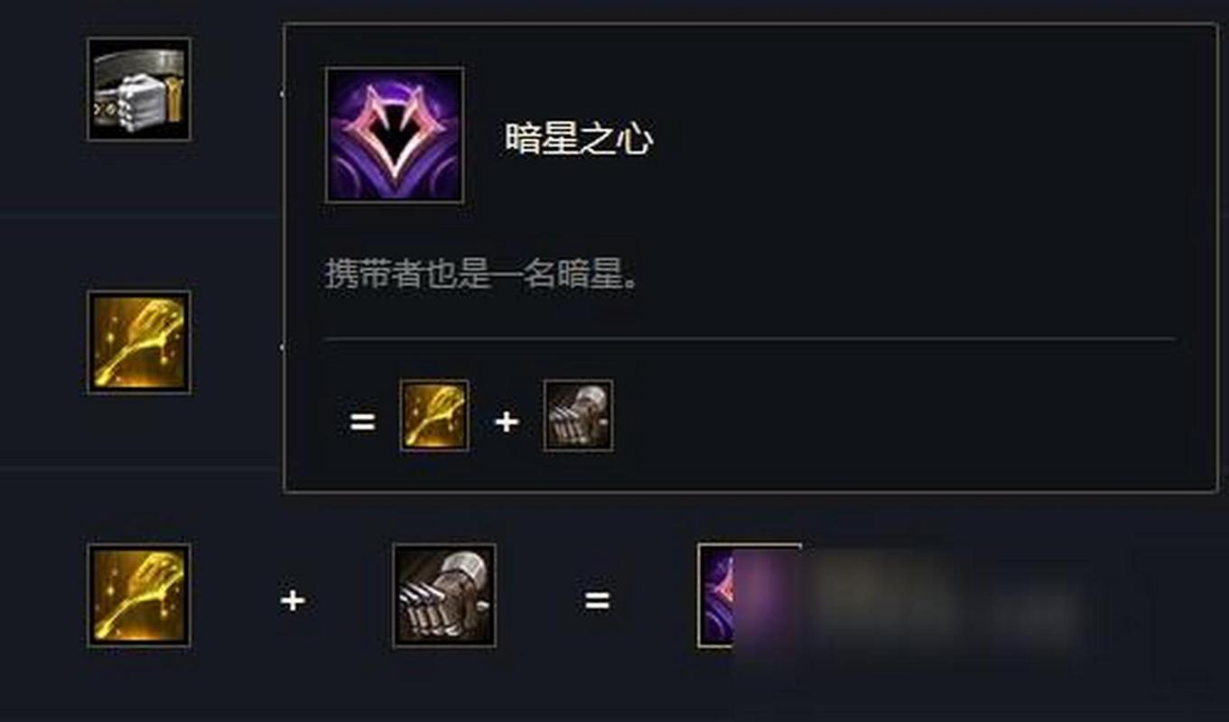 英雄联盟云顶之弈暗星之心合成公式:金铲铲+拳套。装备效果:携带者也是一名暗星。羁绊效果:当一名暗星英雄阵亡,他会让附近的一名友方暗星英雄获得伤害加成50%伤害提升效果80%伤害提升效果。《英雄联盟》(英文名:LeagueofLegends。