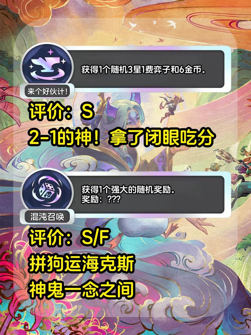 通常情况下,前两个海克斯强化出现彩色的概率较高,而最后一个则更可能保持常规颜色。如下图所示,为《金铲铲之战》中海克斯强化的出现规律。了解这一点有助于玩家更好地调整游戏策略,合理利用手中的资源。