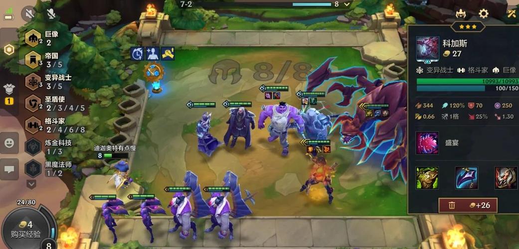 巨像:加里奥作为巨像,占据两个格子并提供强大的控制效果。装备推荐:发条魔灵:主要输出点,推荐装备为守护天使(复活甲)、卢安娜的飓风(分裂弓)和鬼索的狂暴之刃(羊刀),以增强其生存能力和输出能力。