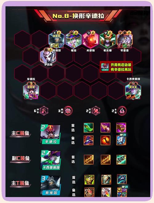 金铲铲之战S6发明家阵容搭配攻略 阵容组成 核心成员:杰斯、塔里克、迦娜(风女)、奥莉安娜(发条)、辛吉德、萨勒芬妮、黑默丁格、基兰。装备分配 主C奥莉安娜:核心装备为鬼索的狂暴之刃、塑极之矛、珠光护手,备选装备为大天使之仗和莫雷洛秘典。这些装备能够大幅提升发条的输出能力。