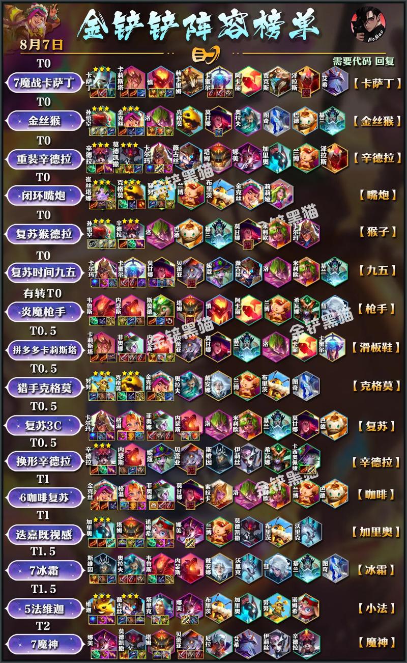 阵容一:豹女换形 豹女、纳尔、蜘蛛、乌鸦、妮蔻、希瓦娜、索拉卡构成阵容。若装备玉龙之心或玉龙纹章,可尝试6玉龙4变形师或继续6变形师。若索拉卡未出现,可补充怒翼龙,龙女亦能作为后期副C,实力强劲。豹女关键装备包括水银、羊刀,前者解控,后者加速输出。