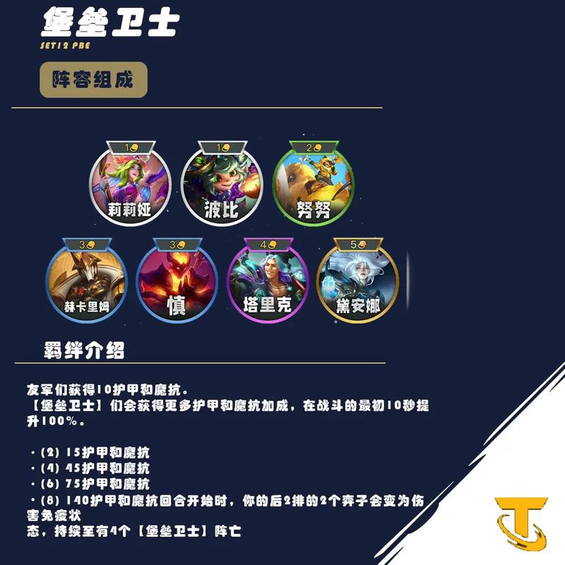 〖One〗、金铲铲之战S14赛季的羁绊详情如下:主要羁绊类型时空裂痕:羁绊效果:该羁绊主要围绕英雄之间的时空连接,提供额外的属性加成或技能效果。关键英雄:包括能够操控时空的英雄,如拥有时间回溯能力的角色。福牛守护者:羁绊效果:当福牛守护者们在战场上并肩作战时,他们将获得额外的生命值和法术强度加成。