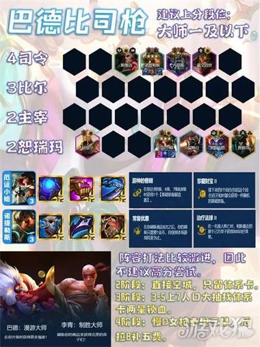 〖Three〗、核心玩法在于保证经济与血量健康,使用利息升级或搜寻关键棋子。通常在3-2时升6级,4-1时升7级,4-5时升8级。前中期追求连胜,考验游戏理解与过渡能力。前期使用4海克斯2强袭2格斗过度,寻找希维尔装备强力的打工旗子,如飞机、卢锡安等。优先升人口,力争连胜。