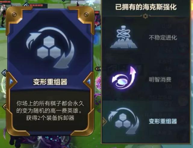 在金铲铲之战中,想要利用变形重组器进行赌博策略,需在第一波野怪结束后,将所有英雄棋子售出,以此获取连败机会,累积利息,确保经济最大化。随后,在3-2阶段利用积累的经济升级至7级,并进行抽牌,全部购买四费卡英雄。如果在3-3阶段出现变形重组器的海克斯强化,便意味着赌局成功。