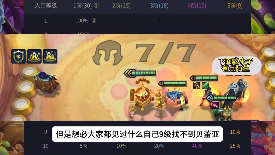 D牌概率概览:- 当人口等级为2级或以下时,D出一费卡牌的概率是100%。- 人口等级达到3级时,D出一费卡牌的概率下降至75%,D出二费卡牌的概率为25%。- 人口等级升至4级时,一费卡牌的概率减半至50%,二费卡牌的概率为30%,三费卡牌的概率为20%。