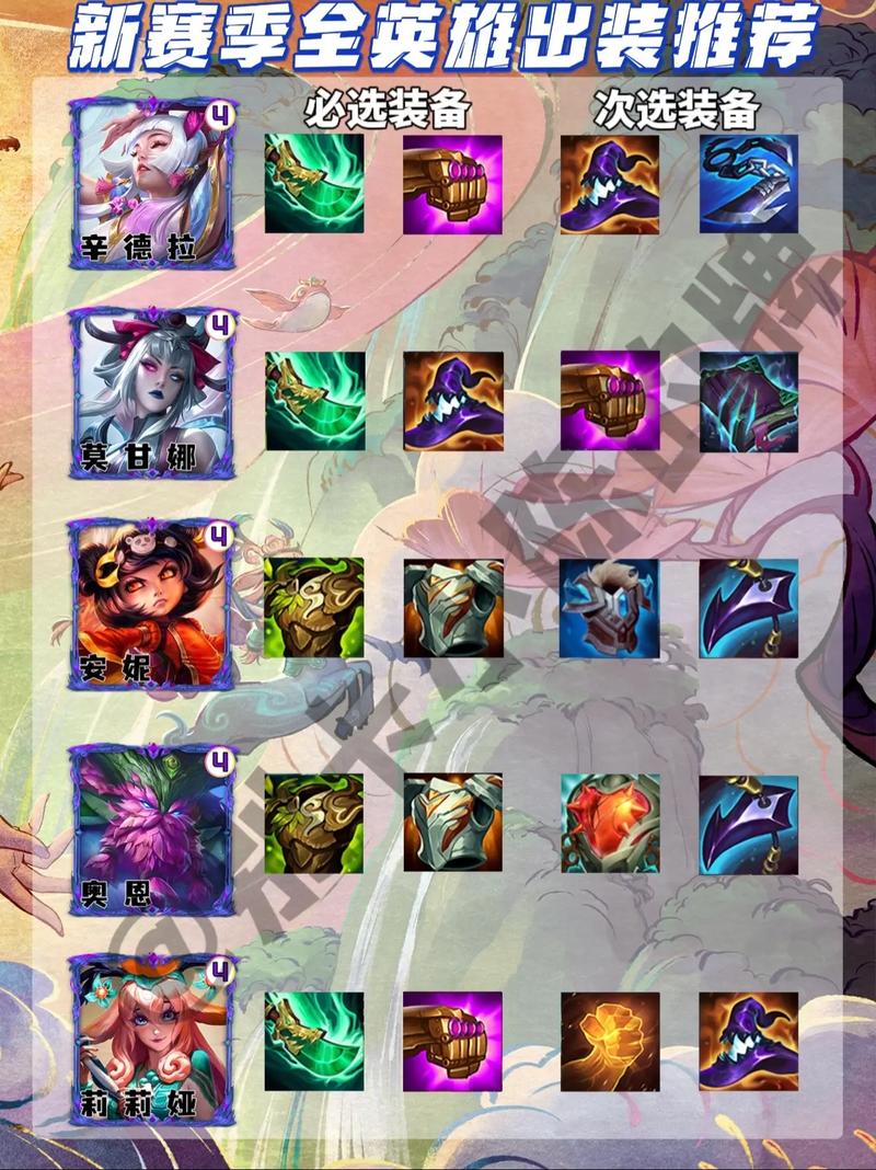 〖Two〗、装备搭配方面,艾希应优先选取轻语、死亡之刃和飓风/羊刀/正义/巨杀等装备,以最大化输出效果。雷克顿则应选取狂徒、反甲、龙牙、饮血、救赎、圣盾使的誓约等坦度装备,以提高生存能力。普朗克和李青的装备则应根据剩余装备灵活选取。