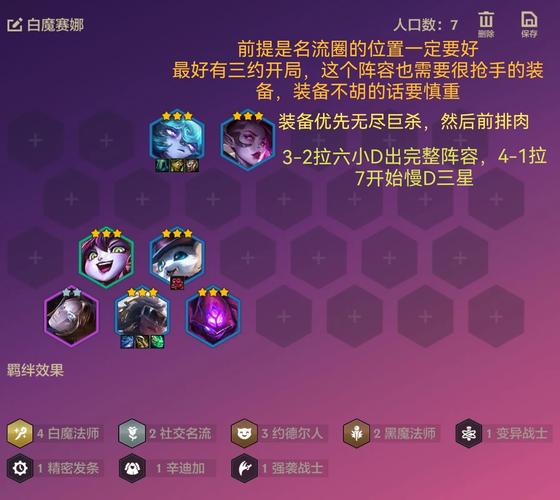 〖Three〗、朔极之矛)是必选装备。鬼书(莫雷诺秘典)可以让她在一定范围内挂重伤,打出真实伤害。大帽(灭世者的死亡之帽)能够增加她的基础伤害,提升整体输出能力。在实际游戏中,可以根据对手的阵容和装备情况灵活调整装备选取。上面就是金铲铲之战s5白魔发明家阵容的玩法搭配建议,希望对玩家们有所帮助。