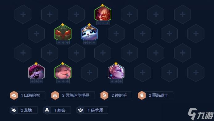 阵容组成 羁绊组成:4神射手、3宗师、3龙魂、1浪人、1忍者。 核心英雄:小炮、提莫、布兰德、希维尔、萨米拉、慎、刀妹、永恩。装备选取 主C小炮:必备装备为鬼索的狂暴之刃、巨人捕手和无尽之刃,备选装备为最后的轻语、正义之手、三相之力等。