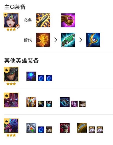 〖Five〗、卡莎:推荐装备法爆、正义拳套、天使权杖,提升其法术输出和生存能力。 大眼:推荐装备蓝BUFF、法爆、破防者,以增加其技能释放频率和法术穿透。 卡萨丁:建议装备肉装,如狂徒铠甲、荆棘之甲等,以增强其坦度和生存能力。