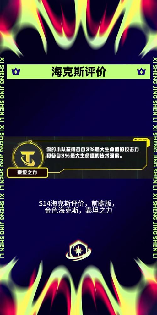 〖Two〗、《金铲铲之战》中海克斯规律是指游戏内英雄的羁绊或职业,在满足特定条件下会得到加强,从而产生额外的战斗能力。以下是关于海克斯规律的详细解释:海克斯科技的力量 在《金铲铲之战》中,海克斯科技是一种核心游戏机制,通过特定的英雄羁绊或职业组合来触发。