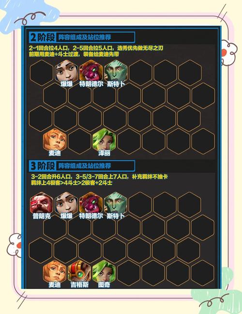 在金铲铲之战的双人作战模式中,选取合适的阵容搭配对于上分至关重要。以下是两个强力阵容的详细搭配方案:极客希维尔阵容 阵容组成:刀妹、嘉文四世、机器人、布隆、纳尔、金克丝、希维尔、希尔科、艾克。羁绊组成:2海克斯科技、4强袭战士、4极客、2保镖。
