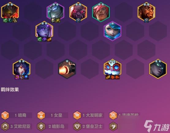 〖Four〗、- 羁绊:7玉龙、1唤星者、1吟游诗人、2格斗家、2冒险家、2秘术师、2狂刃战士、2换形师、1龙神。- 装备推荐:猴子配上火炮、无尽、轻语;石傲玉带饮血剑、泰坦;贾克斯则推荐日炎、传送门、板甲。 黯灵刺狮子狗阵容 - 阵容成员:乌鸦、芮尔、狮子狗、尼菈、戴安娜、奇亚娜、男枪、厄佩琉斯。