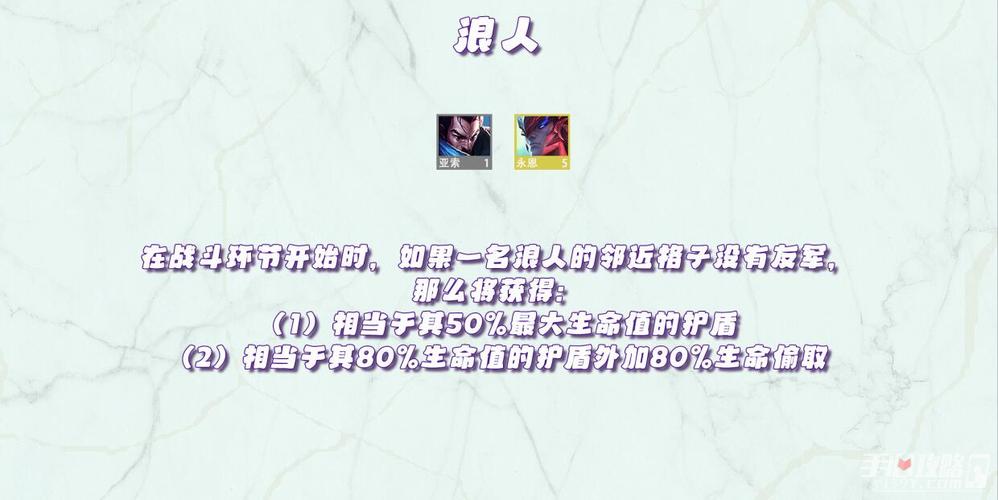 会掉落【金铲铲】,和一个非常稀有的【福袋】,掉落大量的装备。3战神:【战神】英雄们获得生命偷取(基于自身的已损失生命值),并且对目标造成额外伤害(基于目标的已损失生命值)。4刺客:固有能力:在战斗环节开始时,【刺客】们会跃至敌方后排。