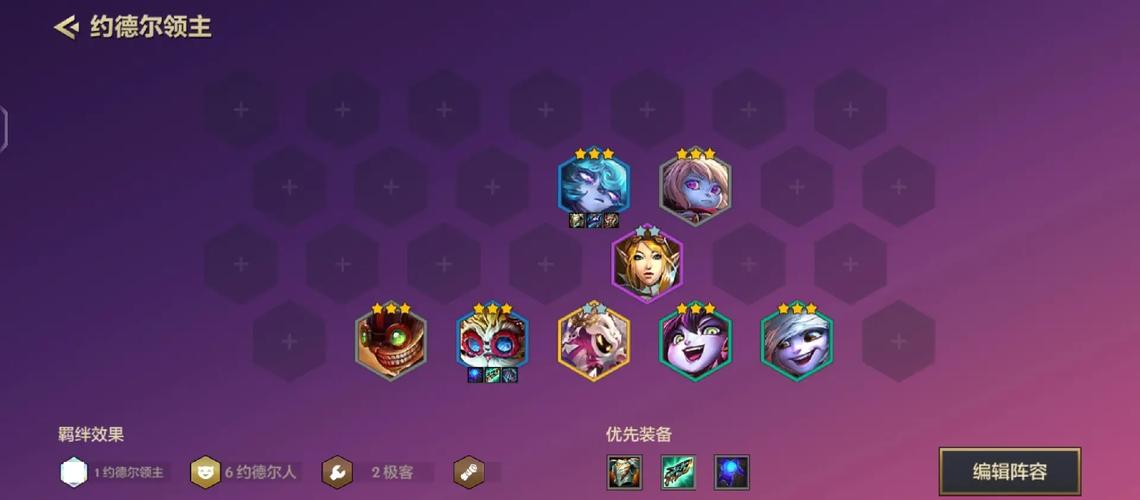 金铲铲之战中的约德尔人阵容需要全员追求三星,推荐以库奇为主力输出,纳尔和薇古丝作为前排,加入炸弹人、波比、赛娜、璐璐和维迦,组成6约德尔人,1约德尔大王,2社交名流,2黑魔法使,2白魔法师。在海克斯科技方面,优先选取大天使之拥,妙手空空和如此矮小,其次是蓝电池和掷骰狂人。