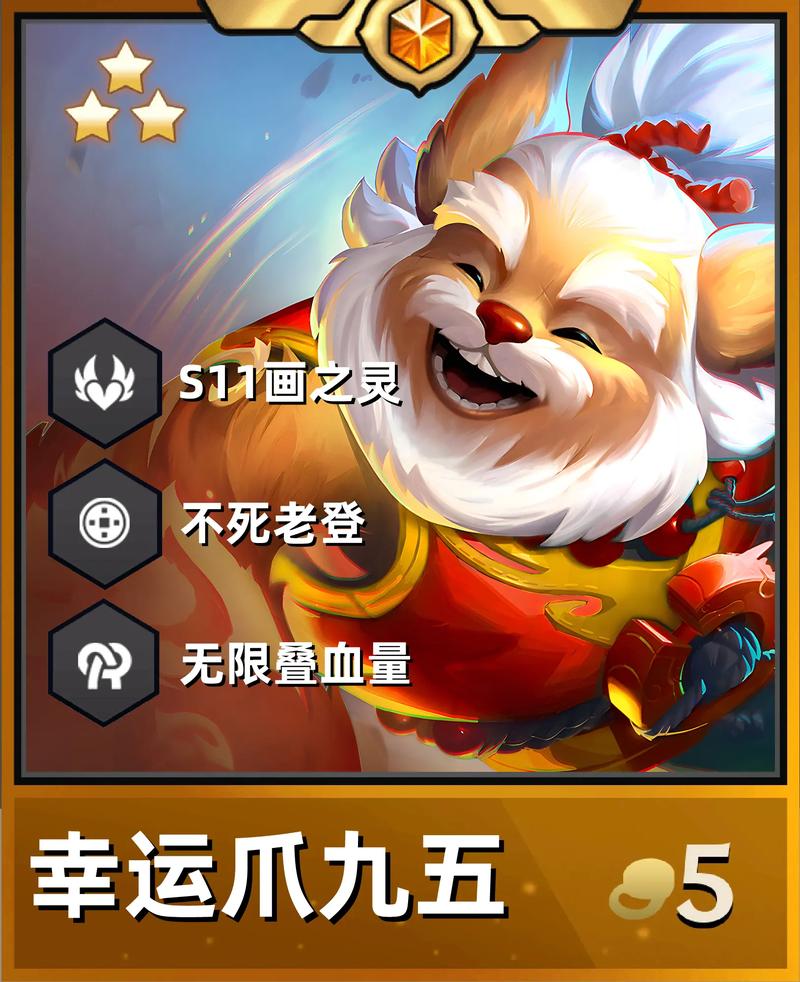 〖Three〗、首先就是蓝电池(白银、棱彩):你的弈子在施放技能后恢复一定法力值;2,妙手空空(黄金):出现在备战席的约德尔人有时会自带一件基础装备;3,小巨人(黄金):你的小小英雄体型变大,并恢复 35 点生命值。