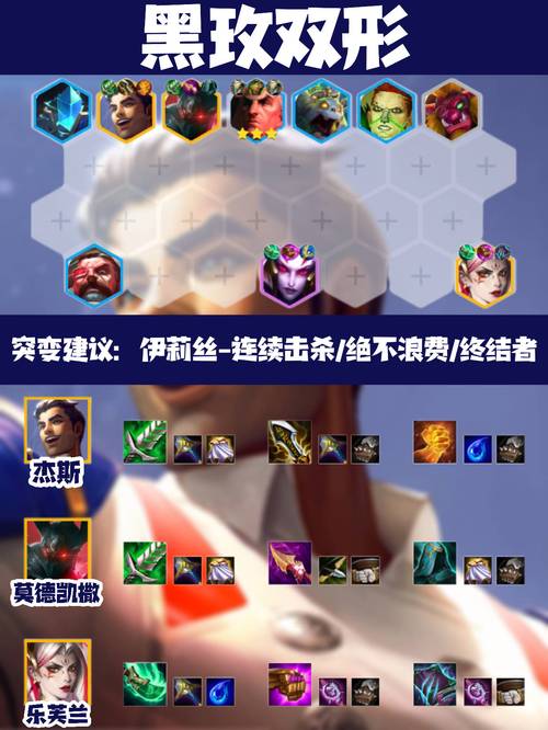 运营策略: 选秀阶段:优先抢反曲之弓和拳套,用于合成劫的关键装备火炮和水银。 早期游戏:可以采取连败策略,以保证在选秀中拿到更好的装备。尽早合成劫的核心装备。 中期过渡:在3-2阶段升6人口,开始大搜卡找劫的天选,同时上3战神4明昼羁绊,确保2星劫后能够稳住血量。