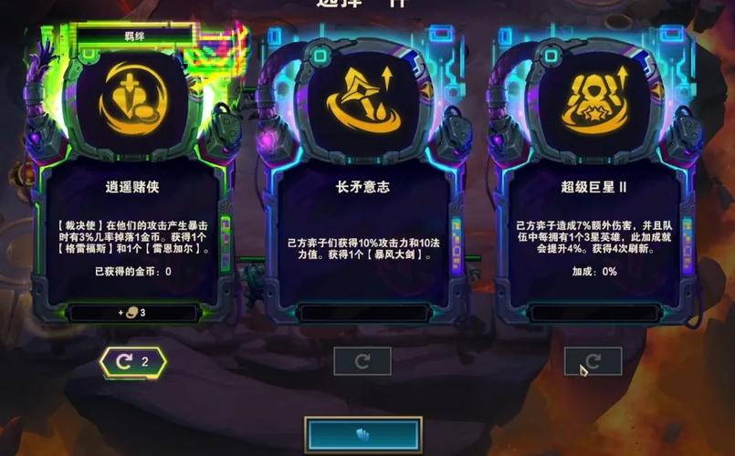 〖Two〗、海克斯科技选取: 优先选取能够增强法术输出或续航能力的海克斯科技,如狩猎律动、黑魔法师之心/徽/冕等。 其他有助于提升经济和搜寻高费卡的海克斯科技也是不错的选取。 注意事项: 在游戏中要时刻关注对手的阵容和装备情况,灵活调整自己的战术和装备分配。