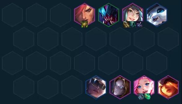 〖One〗、优先合成金克丝的装备,然后有肉装合肉装多余的散件直接给极客其他旗子,尽可能保证每一个极客旗子都有一件散件。8-9级的选取非常多,塔姆来的早8级就可以上,到了9可以上维克托等提升阵容上限,一切都是为了吃鸡而增加阵容上限。