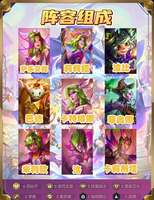 阵容搭配方面,你可以尝试这样一套经典组合:艾瑞莉娅、蔚、挖掘机、赛娜、萨勒芬妮、希维尔和纳尔。这套阵容羁绊组成为4强袭战士、3名流之心、2格斗家等。刀妹作为核心C位,承担主要输出,蔚和挖掘机构建前排防线,而赛娜、萨勒芬妮和希维尔则提供强大的辅助和控制。