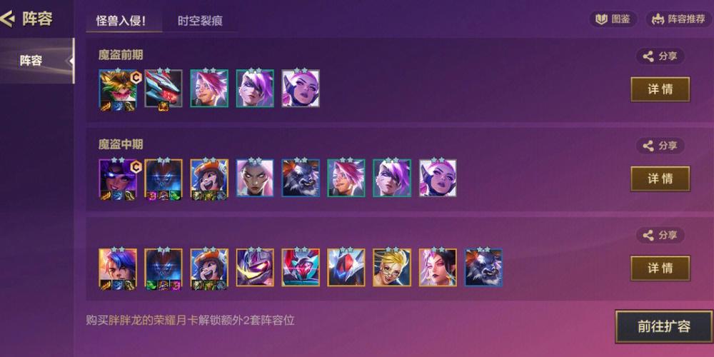 阵容搭配: 核心英雄:娑娜、伊泽瑞尔、蔚、孙悟空、瑟提、贾克斯、阿利斯塔。 羁绊搭配:3战斗机甲、3地下魔盗团、2护卫、2斗士、2秘术卫士。七人口阵容,八人口可补瑟庄妮或维克兹。 运营思路: 前期:越早凑齐3魔盗越好,利用前期大家质量不高,扣血不多的特点,连败到6人口,优先拿装备。