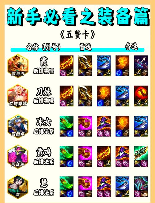 〖One〗、金铲铲英雄装备搭配分为强袭战士、巨像、艾克、狙神。强袭战士这里主要推荐两个主C,希维尔跟刀妹,希维尔的话就是搭配海克斯打持续的魔法伤害,刀妹的话就是搭配名流给刀妹。巨像这里基本上都是坦克为主,新英雄牛头是一张很强的单卡,有稳定的控制,带上冰心可以给对面后排持续减少攻速,当然,给离子给鬼书也是可以的。