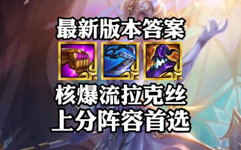 金铲铲之战S10电舞拉克丝玩法解析:阵容组成 核心阵容:拉克丝、扎克、贾克斯、劫、酒桶、卡牌、娜美、炸弹人。羁绊搭配:4电子舞曲、4耀光使、3迪斯科、2格斗。核心英雄装备 拉克丝(主C):青龙刀增加回蓝效率,法爆帽提升技能爆发伤害,确保一个技能瞬间清屏。