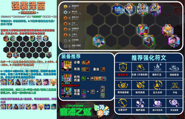 〖Five〗、在《金铲铲之战》中,海克斯科技是一种核心游戏机制,通过特定的英雄羁绊或职业组合来触发。规律的触发条件 海克斯规律的触发通常需要满足特定的条件,如形成特定的英雄羁绊或达到特定的职业数量。这些条件一旦满足,就会启动海克斯科技的力量,为英雄提供额外的属性加成或特殊技能。