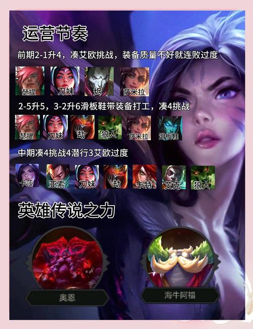 金铲铲之战德莱厄斯与卡特琳娜组成的诺克萨斯双C冷门上分策略如下:阵容组成 核心英雄:德莱厄斯、卡特琳娜其他英雄:厄斐琉斯、艾克、克列、卡西奥佩亚、卡拉拉,共6个诺克萨斯英雄,包括暗裔、潜行者、主宰、裁决战士各一个。英雄之力与强化符文 英雄之力推荐带崔斯特,强化服二杠一必拿卡牌专属技能。