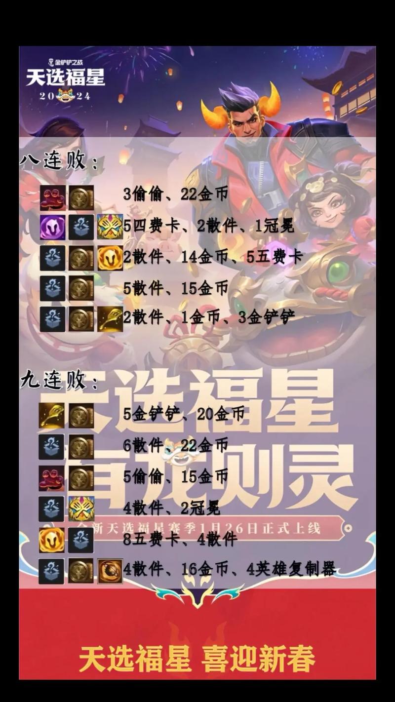 金铲铲之战执事奖励主要包括以下几个方面:赛季奖励:段位奖励:根据玩家在赛季中的最终段位,会获得不同数量的胜点、蓝色宝石、英雄碎片等奖励。段位越高,奖励越丰厚。赛季皮肤:每个赛季都会推出专属的赛季皮肤,作为对高段位玩家的奖励。这些皮肤通常具有独特的外观和特效,是玩家展示实力和荣誉的象征。