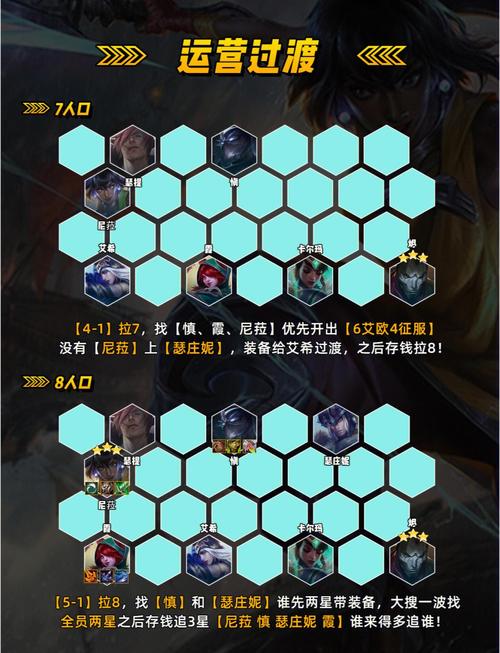 〖Two〗、金铲铲之战铁王八阵容的克制技巧主要有以下几点:调整站位以拉扯阵容:针对铁王八阵容,常规的站位往往难以突破其防御。因此,我们需要调整站位,将前排棋子放在倒数第二格,输出棋子全部沉底。这样的站位可以拉扯开铁王八阵容,使其前排分散,减少其整体防御能力。