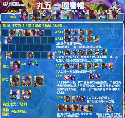 金铲铲之战S9主宰盖伦阵容的具体搭配如下:6主宰3德玛2司令2术士。这个搭配能够充分发挥盖伦的输出和生存能力。7级时,上阵提莫、狼人、瑟提、琴女、盖伦、狗头、皇子,即可形成阵容。如果敌方战士装备丰富,可以考虑用狼人替代诺手。8级时,如果有剑魔,则优先开启6主宰阵容;若没有剑魔,则可以适当调整。
