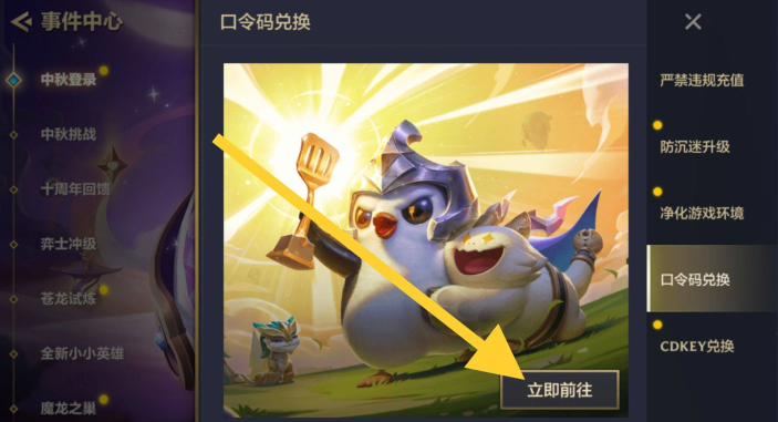 〖Three〗、《金铲铲之战》的兑换码和口令码在游戏内的事件中心进行兑换。具体步骤如下:打开游戏并登录:确保你已经下载并安装了《金铲铲之战》游戏,并且成功登录了你的账号。进入事件中心:在游戏主界面,点击左上角的“事件中心”按钮进入。