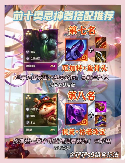 〖Four〗、在金铲铲之战S9赛季中,推荐的阵容是诺克萨斯双C,该阵容由德莱厄斯、卡特琳娜、斯维因、亚托克斯、艾克、克烈、卡西奥佩娅、莎弥拉组成。英雄传说之力推荐崔斯特、李青、魄罗,国度强化则选取艾欧尼亚幻梦池、弗雷尔卓德炉乡、恕瑞玛集市。