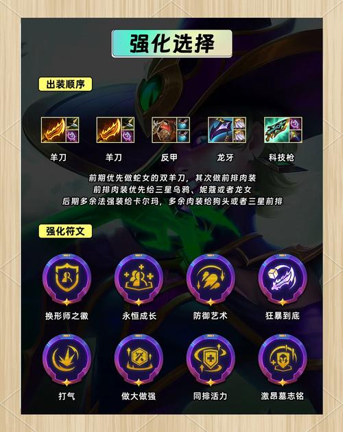 〖Three〗、站位策略:根据场上的C位选取卡特和艾克的站位,调整位置以对准敌方脆弱的前排,确保输出。搜牌节奏:作为一套中期发力的阵容,建议7级前不进行大量搜索。7级时优先获取二星诺手和卡特,二星后通常能轻松连胜。克制分析:诺克萨斯阵容当前强势且冷门,物理和法术装备的运用都相当灵活。