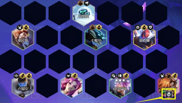 实战运营:开局首抢大棒或者眼泪,优先做出青龙刀或者蓝buff、法爆。前期可以用拉克丝打工,或者来到乐芙兰直接用四灵能组成如图的过渡阵容。正常的拉人口,1-4拉四人口、2-5拉五人口、3-2拉六人口。