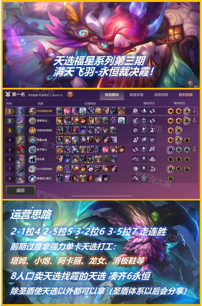 〖Four〗、《金铲铲之战》s8版本天选福星森林霞玩法思路如下:阵容组成 羁绊组成:6永恒之森、4斗士、2神盾使、2裁决使、1霸王、1铁匠。 阵容成员:茂凯、努努、科加斯、洛、瑟提、千珏、霞、奥恩。装备选取 主C霞:巨人捕手、正义之手、无尽之刃。备选装备有法爆、破防者、科技枪、黑切等。