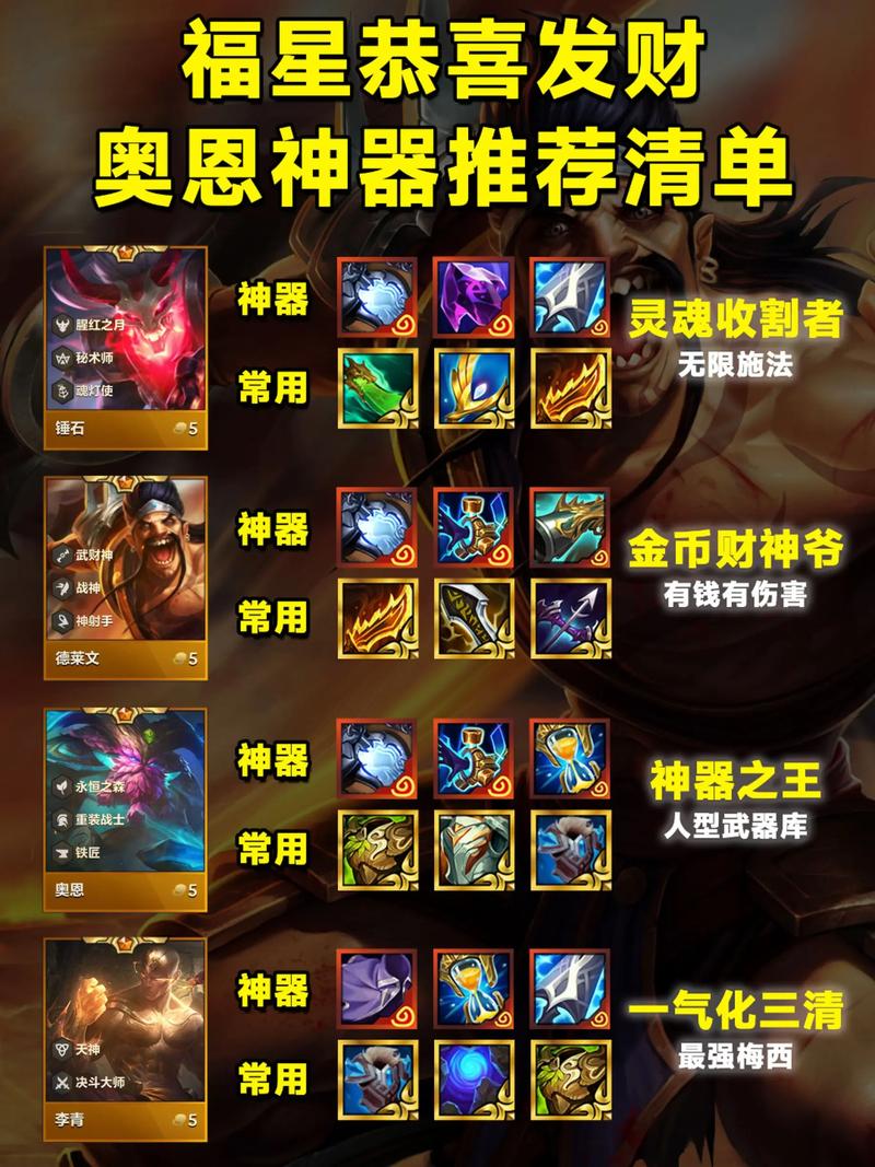 金铲铲之战天选福星恭喜发财奥恩九五阵容搭配推荐_金铲铲之战