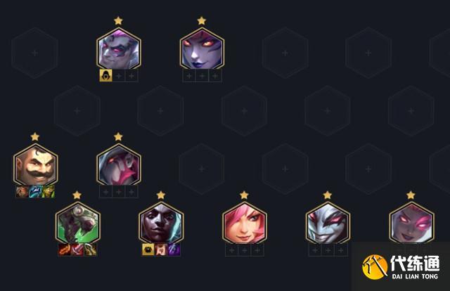 〖Two〗、英雄:阿卡丽、艾克、萨科(小丑)、卡特琳娜、婕拉、德莱厄斯、迦娜、布隆。羁绊:5辛迪加、4刺客、2极客、2保镖、2学者。装备分配 主C萨科(小丑):鬼索的狂暴之刃、无尽之刃、守护天使。备选装备为火炮、饮血剑。副C布隆:狂徒铠甲、石像鬼的板甲、龙爪等肉装。