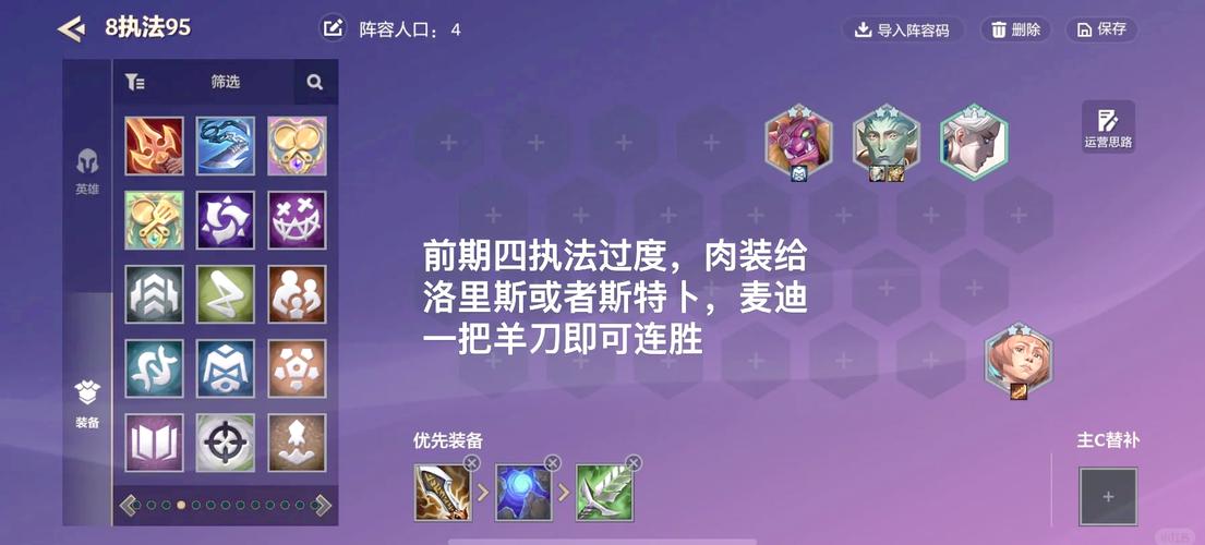 阵容组成 该阵容主要由3豪侠、6枪手、3剑士以及1忍者组成。这样的组合能够充分发挥男枪的输出能力,同时利用枪手和剑士的羁绊效果,提升整体战斗力。核心装备 主C男枪:首选装备是剑转(剑士之徽),这可以极大地提升男枪的攻击速度和技能释放频率。其次是火炮,增加攻击距离,避免被近战英雄贴身。
