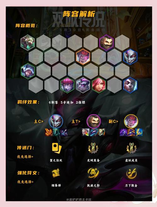 T0阵容核心英雄 拉克丝:在法师术士或德玛西亚体系中,拉克丝都是强度极高的选取。其技能伤害和控制能力都非常出色,特别是前排灵风加拉克丝的玩法,能够开局直接秒后排,非常强势。厄加特:尽管经过削弱,但厄加特的强度依然很高,这主要得益于祖安羁绊的强力加成。厄加特能扛能打,是后排输出的绝佳选取。
