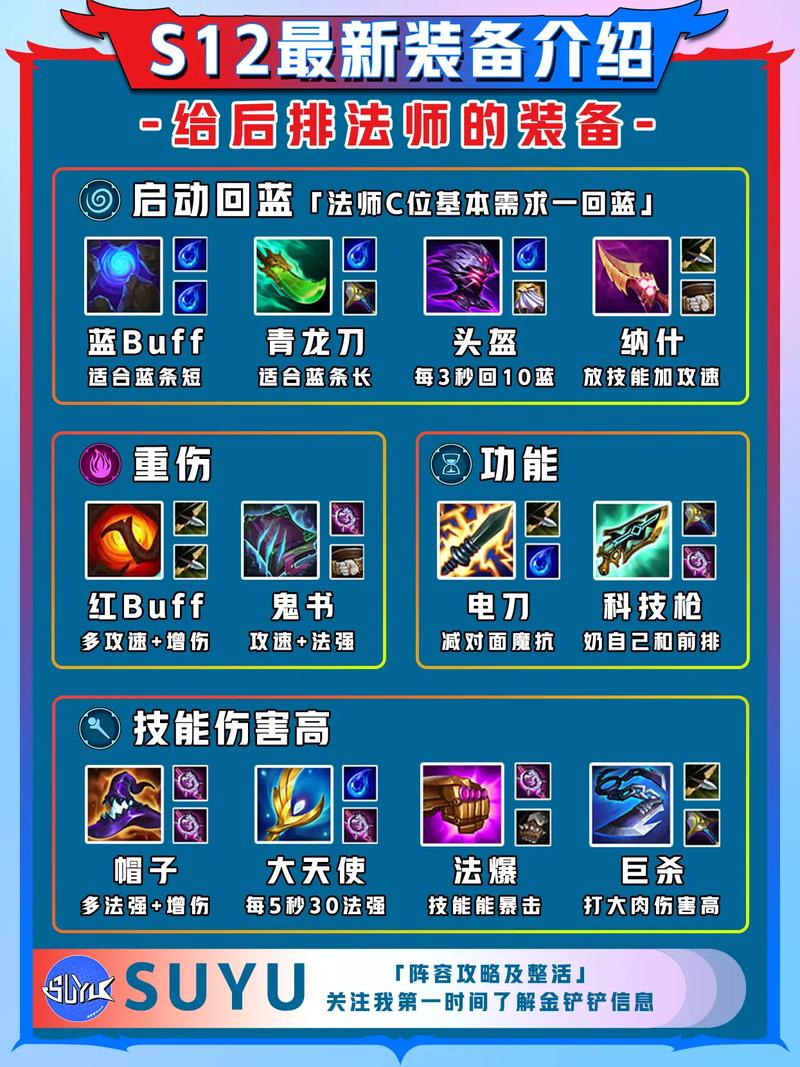〖Four〗、装备推荐 娑娜:核心输出装备是蓝BUFF和法爆,最后一件装备选取大天使之杖、帽子、巨杀、科技枪等。 安妮:主T角色,装备组合为救赎、离子火花、泰坦的坚决等。 其他装备则根据剩余资源和需要分配给索拉卡或其他角色。运营思路 开局抢眼泪,优先为娑娜准备蓝BUFF。