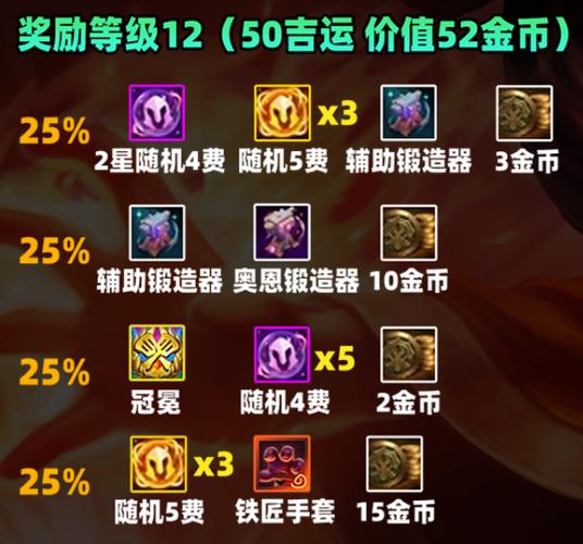 〖Three〗、《金铲铲之战》S13征战之路奖励主要包括以下内容:征战之路核心奖励 宝箱奖励:在S13赛季中,当玩家在征战之路中造成60点玩家伤害后,将获得一个特殊宝箱。这个宝箱内含4张5费卡和2星4费卡,以及若干装备。这样的奖励组合极大地提升了玩家的战斗力和策略灵活性。