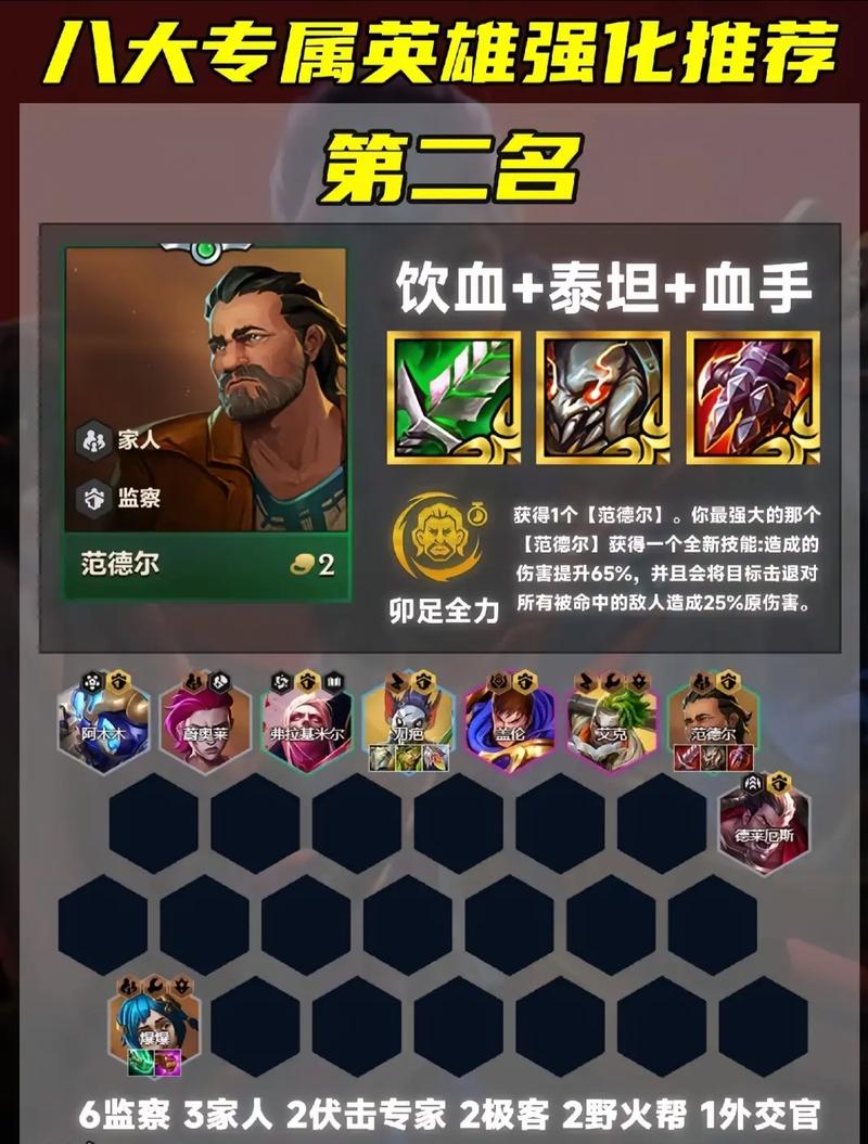 〖Three〗、若铁男缺失,可使用任意统领卡牌替代。法系阵容:虽中期可能略显吃力,但可通过希尔科等英雄进行过渡,最终构建以黑魔法师等高阶羁绊为核心的阵容。总结:在《金铲铲之战》中,利用“终身黄铜”海克斯效果,可以通过构建黄铜羁绊来提升全队伤害和生存能力。