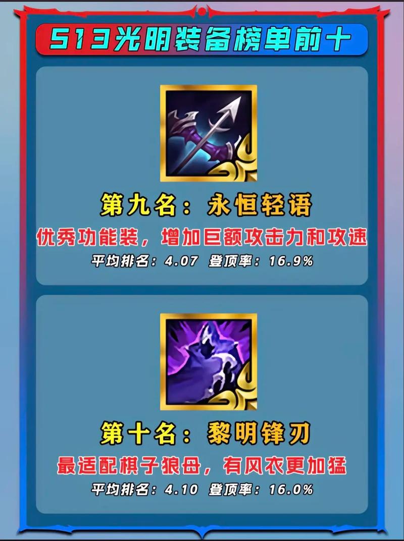 〖Four〗、坦克慎:分配剩余肉装(如狂徒、龙牙、反甲)。格温:补充法强装(如大天使、帽子)。站位策略潜行者(劫、艾克/卡特)站两侧,优先承受伤害切入敌方后排;其余单位沉底站位,保护后排输出并分散敌方火力。