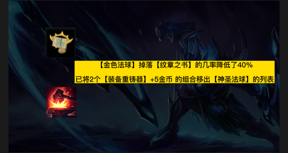 光明武器:希拉娜之矛 新增光明加成:20法术强度。希拉娜之矛的改动为其增加了法术强度加成,使得其更加适合法师类英雄。光明武器:兹若特的干涉 嘲讽半径:由2提升至4。现在,【兹若特的干涉】在放置得当时,能够嘲讽【刺客】。兹若特的干涉的改动使得其能够更有效地克制刺客类英雄,为团队提供更多的保护。