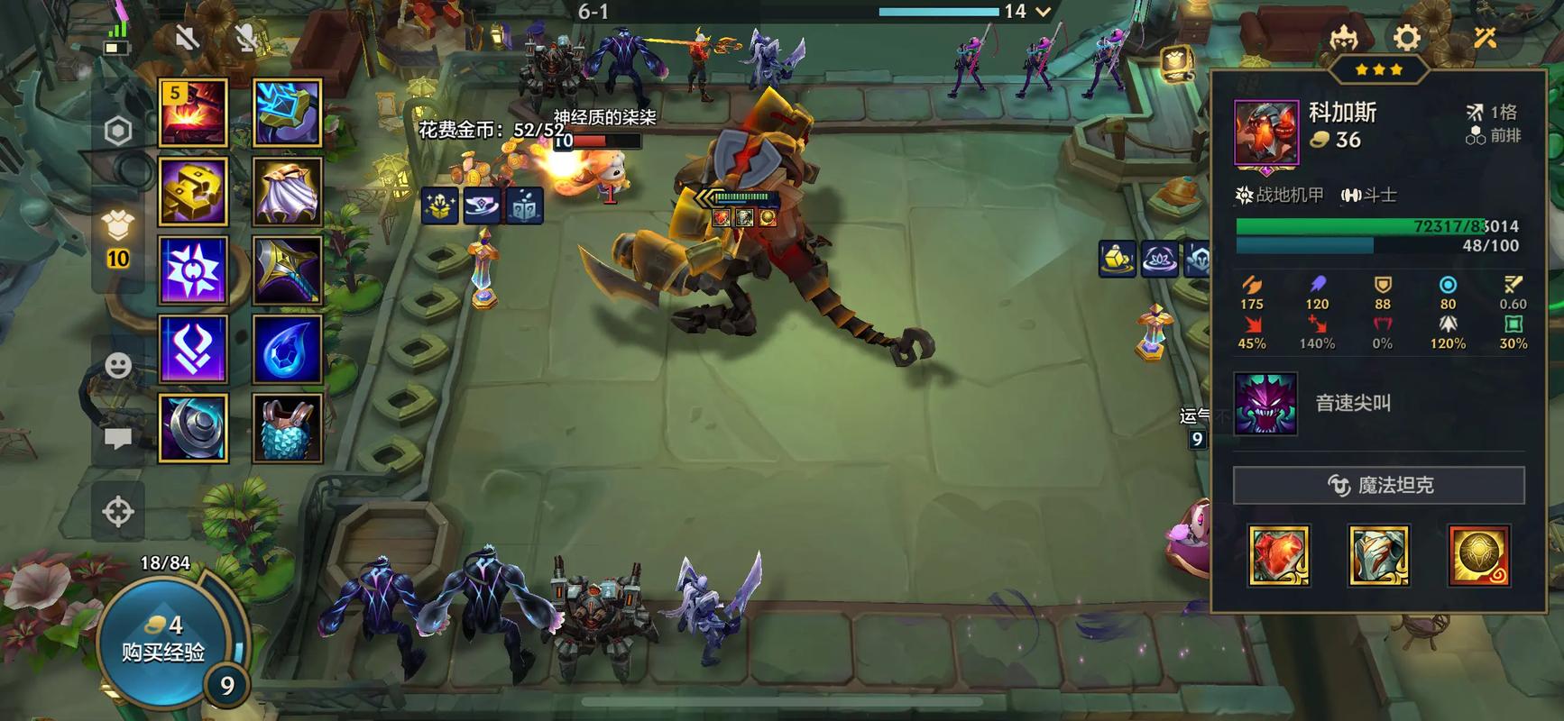 综上所述,科加斯在金铲铲之战S14赛季中是一个强大的前排坦克和输出角色,其技能“音速尖叫”不仅能够造成可观的魔法伤害,还能通过提升生命值和技能规模来增强自身的战斗能力。同时,战地机甲和格斗家的羁绊效果也为科加斯提供了额外的生命值和伤害加成,使其在战场上更加难以被击败。