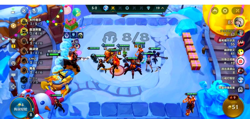 〖Four〗、俄洛伊:石像鬼烬:死亡之刃卢锡安、琴女:羊刀炸弹人:大天使奇亚娜、凯隐:饮血剑约里克:泰坦这些装备都是根据棋子的特性和定位精心挑选的,旨在最大化其战斗效能。玩家在利用超级粉丝羁绊时,可以根据这些装备信息来更好地规划自己的阵容和战术。