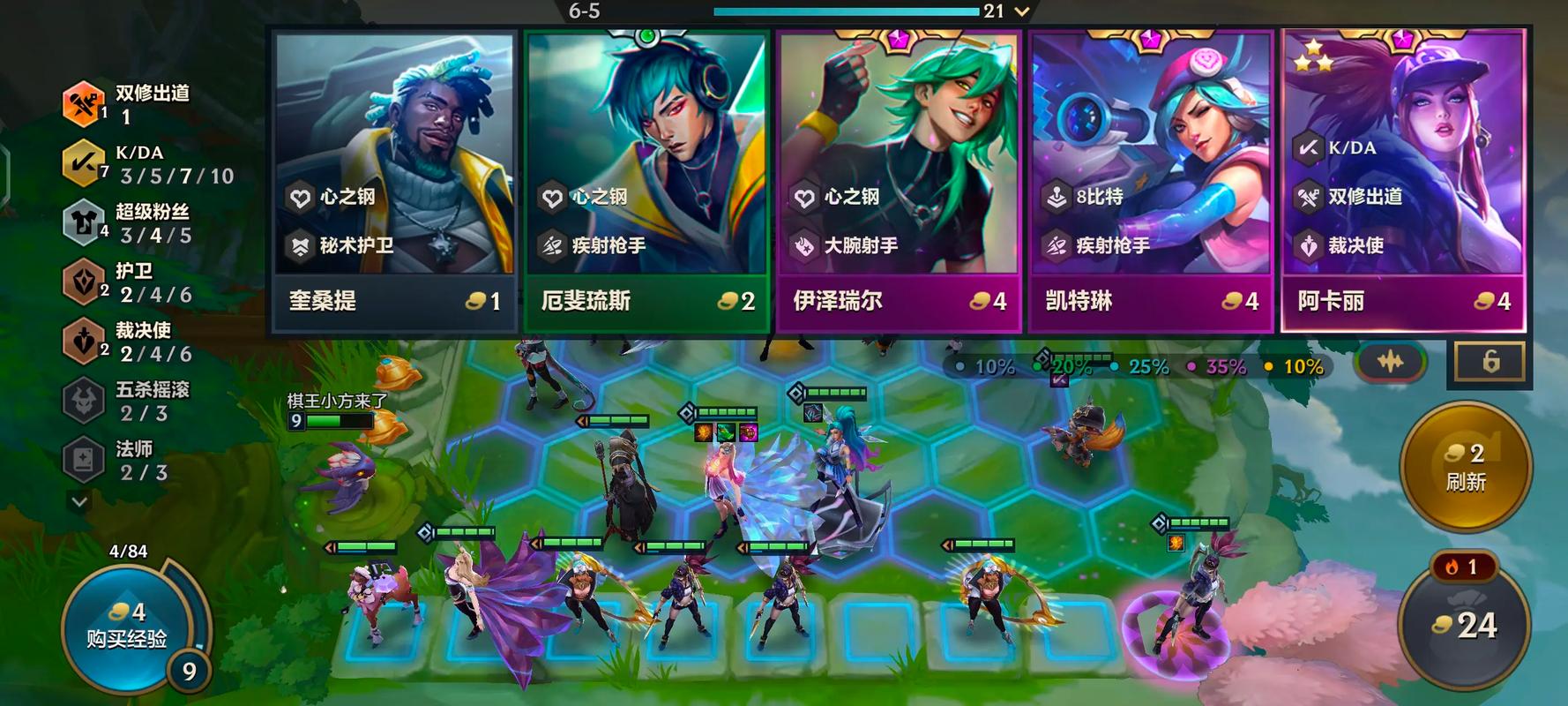 〖Six〗、金铲铲之战双城传说恭喜发财阿卡丽开局玩法攻略:开局过渡 核心思路:阿卡丽开局基本上采用辛迪加刺阵容一路过渡上9。辛迪加刺阵容能够提供足够的控制和输出,帮助阿卡丽在前期稳定发育。对位与保护:阿卡丽虽然输出高,但身板较脆,因此对位要精准,确保她能安全输出。
